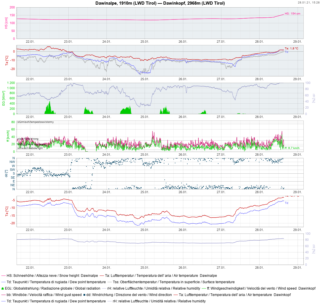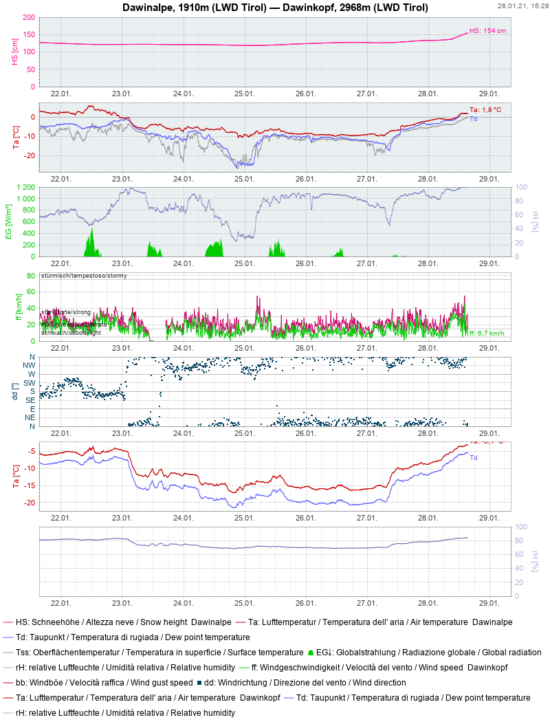 Verantwortliche aus den Bereichen Hydrographie, Meteorologie, Lawinenwarndienst, Bauwerksüberwachung oder Vermessung schätzen aber auch die Aussagekraft von komprimierten Auswertungen und größeren Datenreihen in graphischer Form.