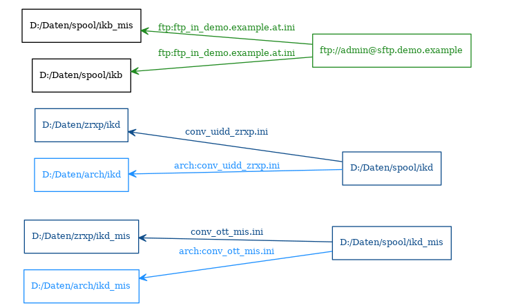 - Datenabholung und Datenversendung via HTTP/HTTPS/FTP/FTPS/SFTP/SMB/SSH/SQL/SMTP (Email)